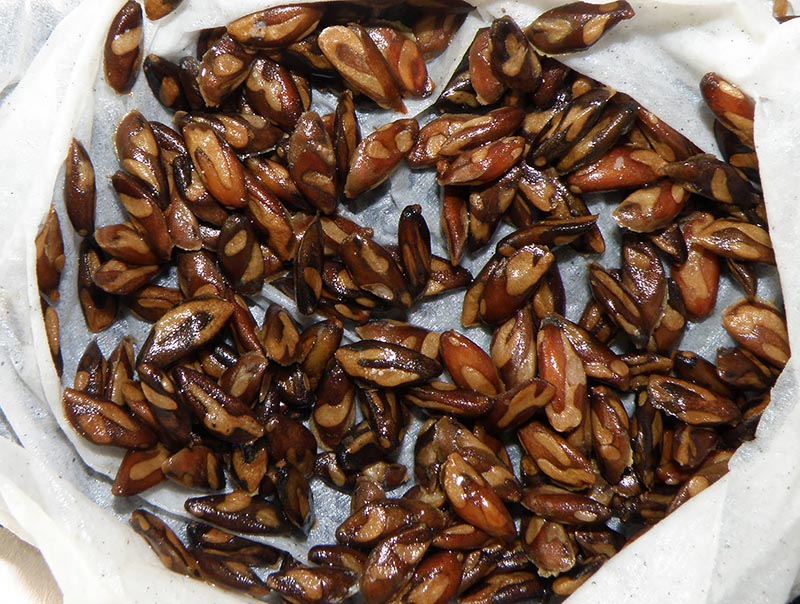 Семена, обработанные марганцовкой, отправились в холодильник в мокром песке. |