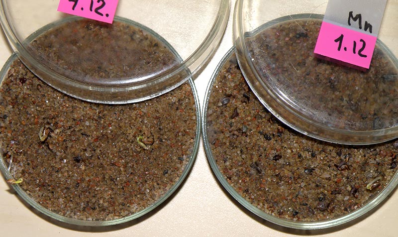 Всходы лиственницы из проросших семян на стратификации. |