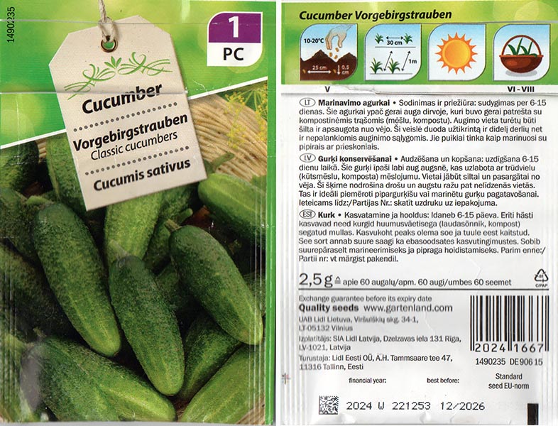 Огурец «Предгорный виноград» (Vorgebirgstrauben) — это раннеспелый (43–55 дней), высокоурожайный сорт корнишонного типа, отличающийся пучковой завязью (2–3 плода в пазухе). Зеленцы небольшие (9–12 см), темно-зеленые, хрустящие, без горечи, идеально подходят для консервирования и засолки. Сорт устойчив к перепадам температур и мучнистой росе.